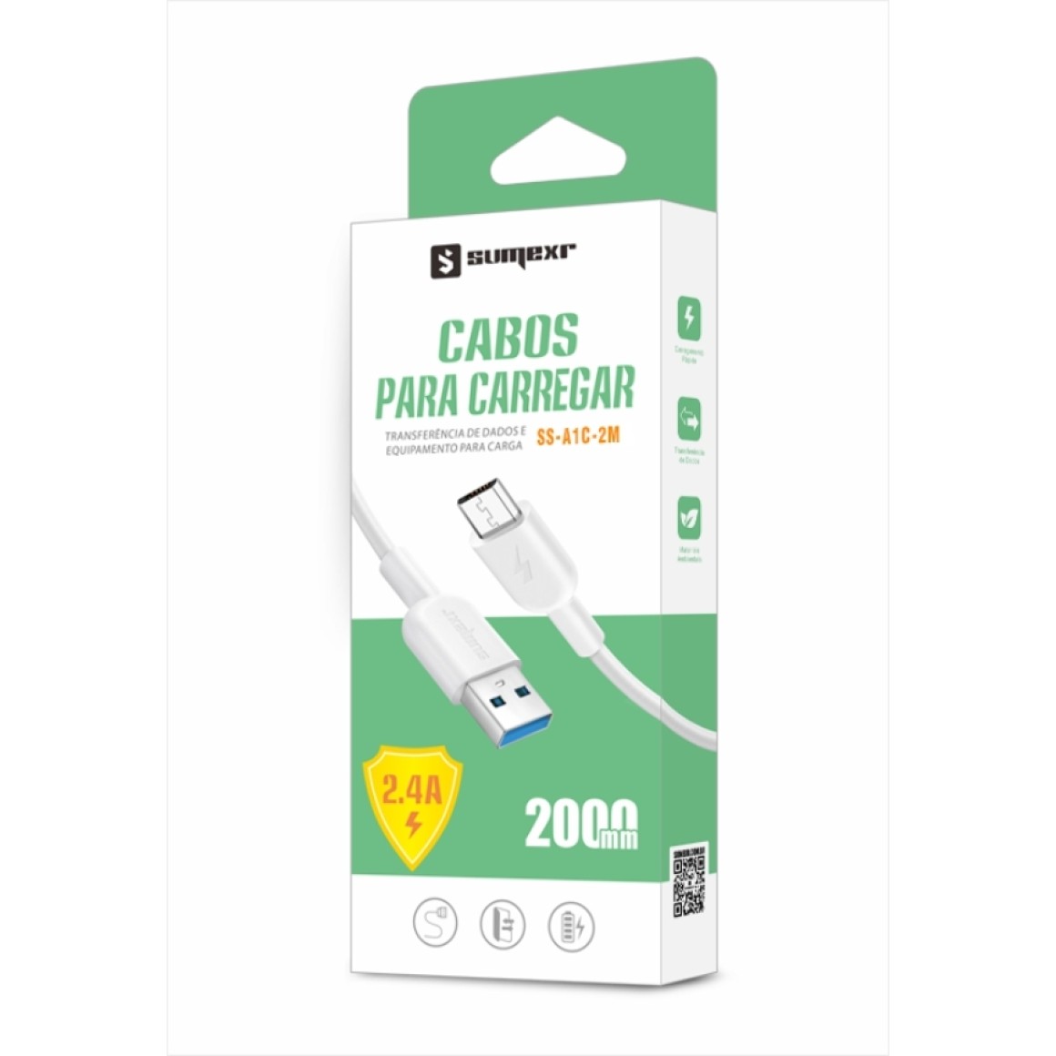 Cabo SX-B122-C - Carregamento Rápido e Transferência de Dados (USB para USB-C)O Cabo SX-B122-C da Sumexr oferece alto desempenho e praticidade, sendo a escolha ideal para quem busca eficiência no carreg...