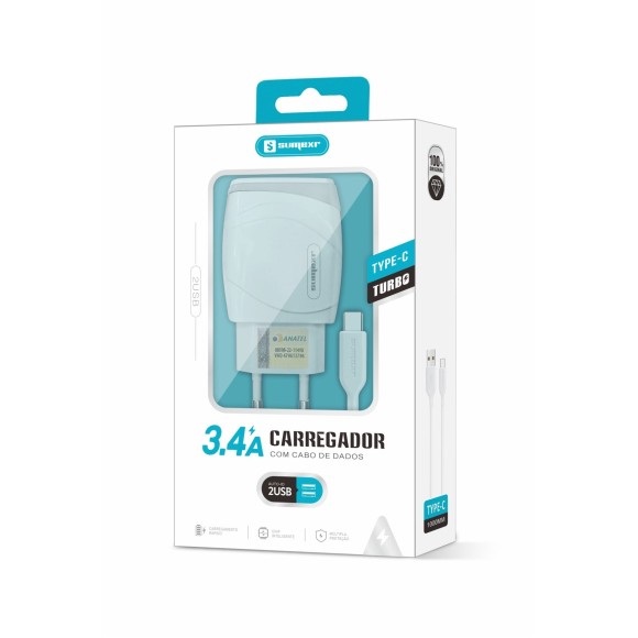 (SX-FC18-C) - Carregador De Parede + Cabo Usb Tipo C - [Caixa com 200 peças]