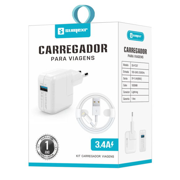 (SX-FC57) - Carregador De Parede + Cabo Lightning - [Caixa com peças]