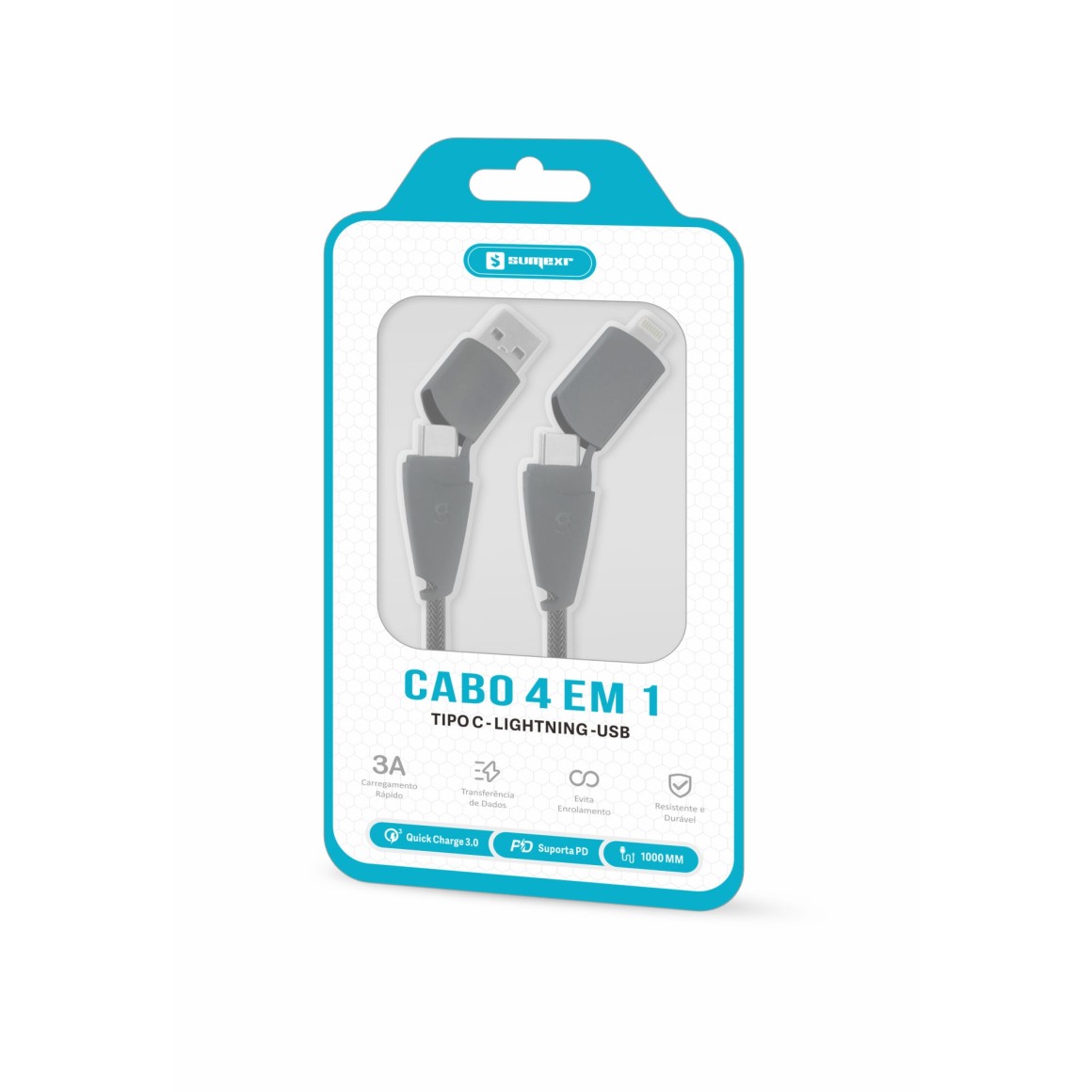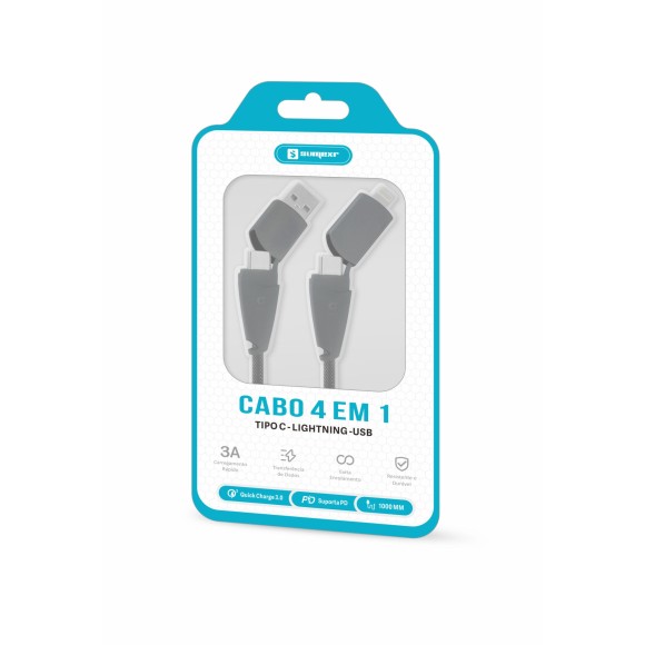 CABO DE DADOS E CARREGAMENTO 4 EM 1 USB/LIGHTNING/TIPO-C