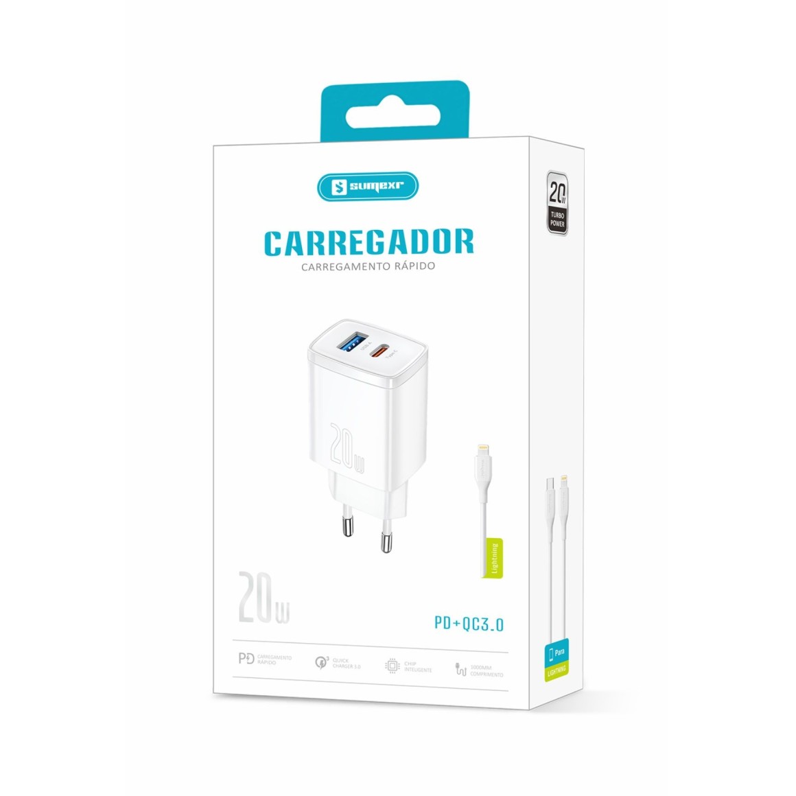 Com a qualidade e confiabilidade da Sumexr, o SX-FC61 - 3 (I6) oferece um carregamento rápido e seguro para seus dispositivos, com a praticidade do cabo Lightning incluso, tornando-o ainda mais completo.